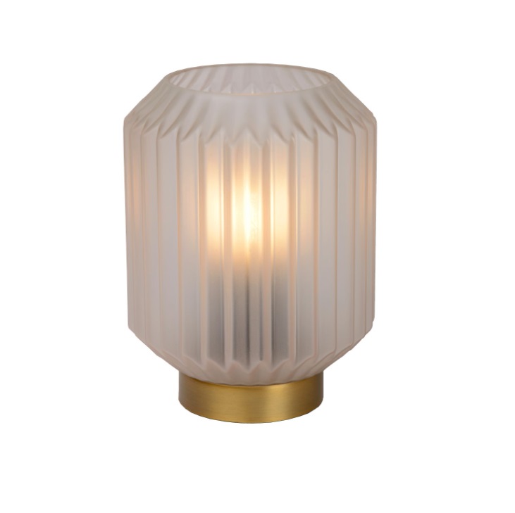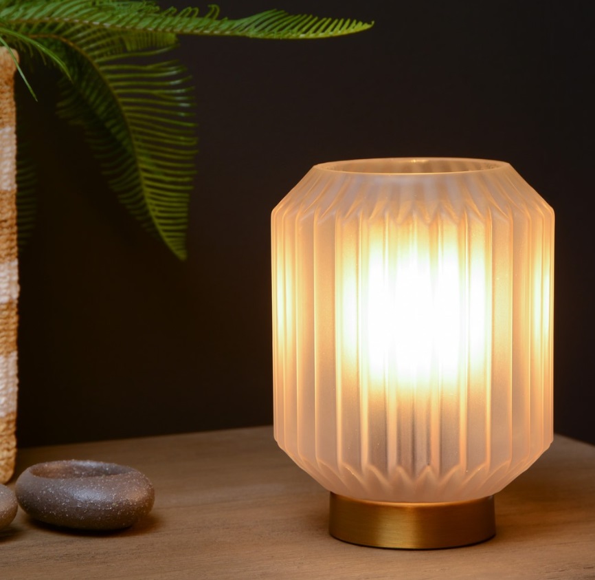 Niewielka biała lampa stołowa Sueno na złotej podstawie