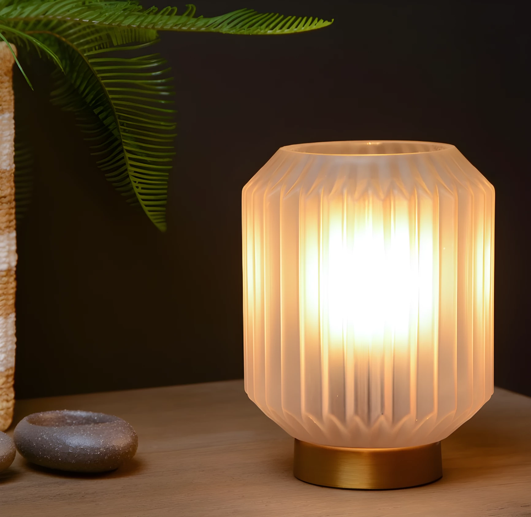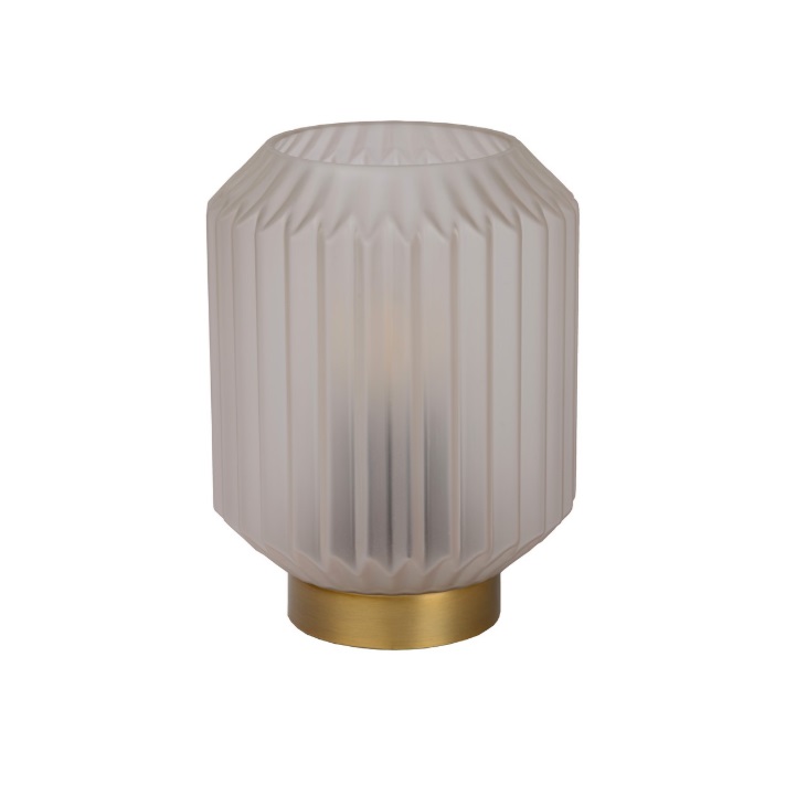 Niewielka lampa stołowa Sueno w białym kolorze ze złotym spodem