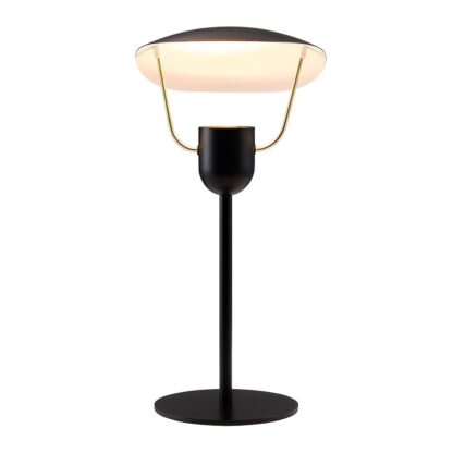 Nowoczesna czarna lampa stołowa Fabiola z eleganckimi złotymi detalami