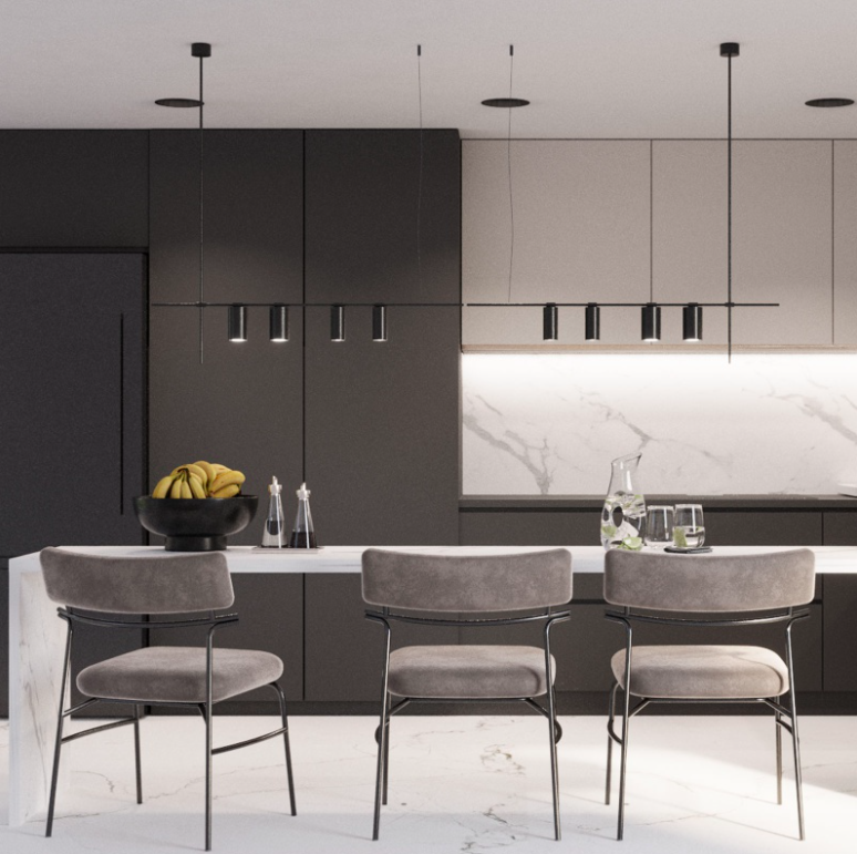 Nowoczesna, podłużna lampa wisząca Namasu 2 w formie czarnych tub