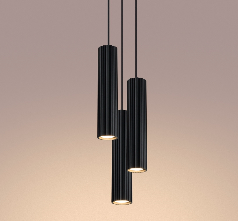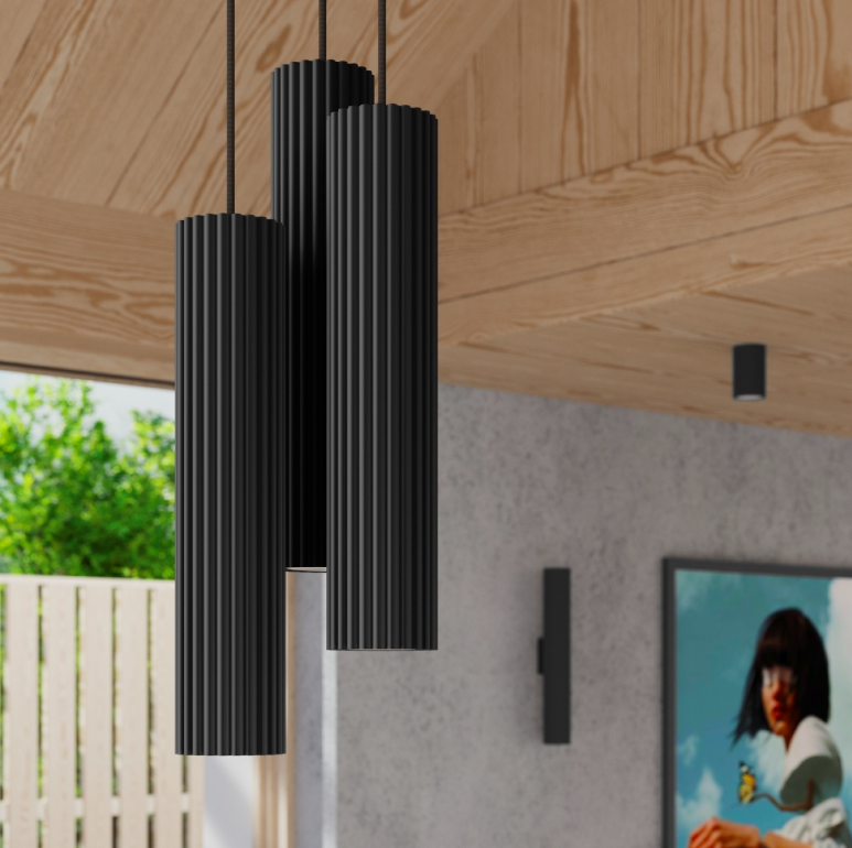 Nowoczesna sufitowa lampa Karbon 3 z czarnymi wiszącymi tubami