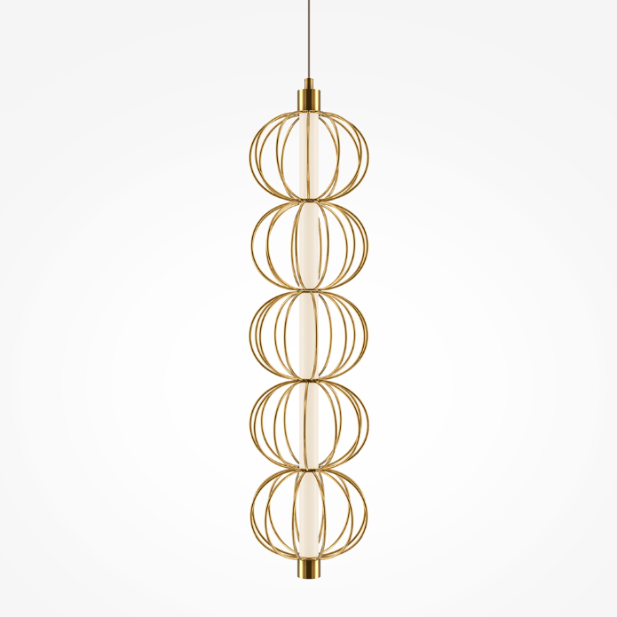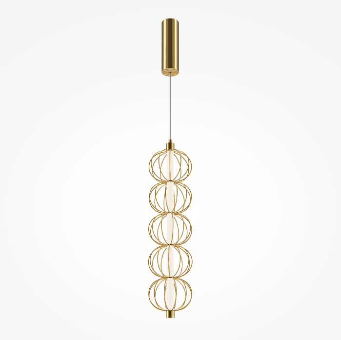 Nowoczesna wisząca lampa LED Golden Cage w złotym kolorze z drucianymi kulami