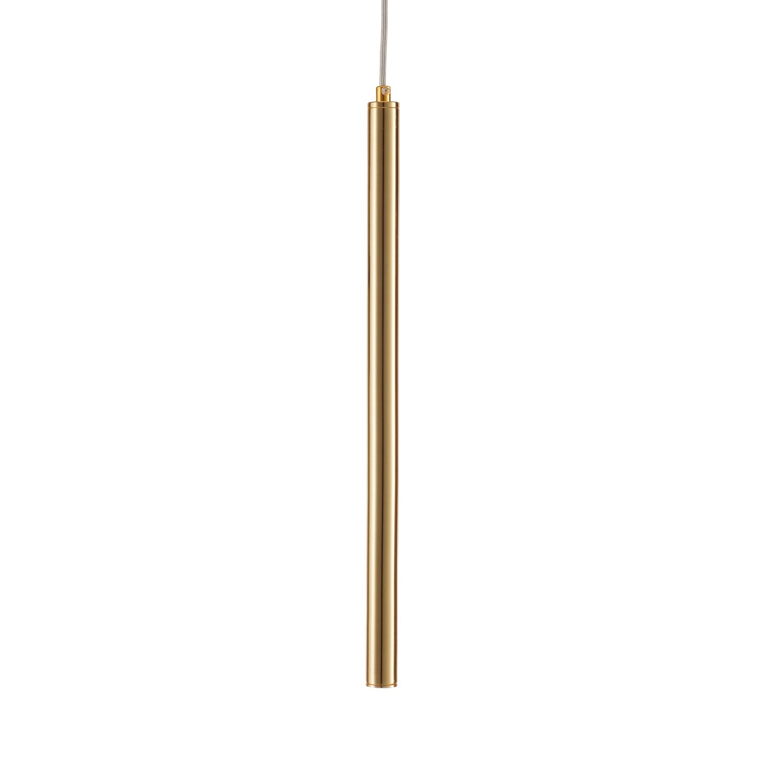 Nowoczesna wisząca lampa Slim w złotym kolorze, idealna do salonu