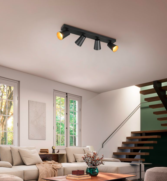 Nowoczesne reflektory Sharp 4 zamontowane na listwie sufitowej