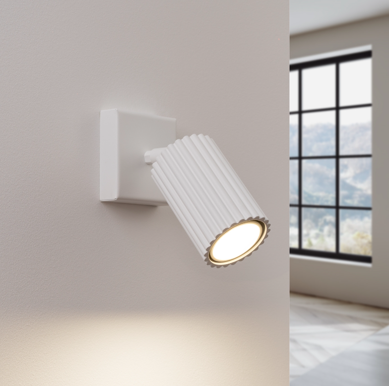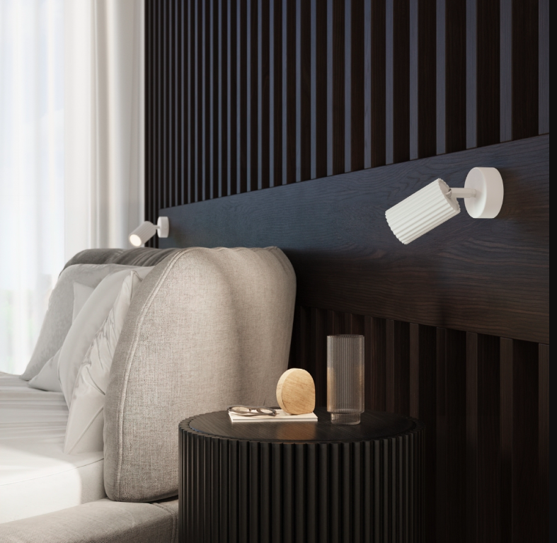 Nowoczesny biały kinkiet Karbon z karbowanym kloszem