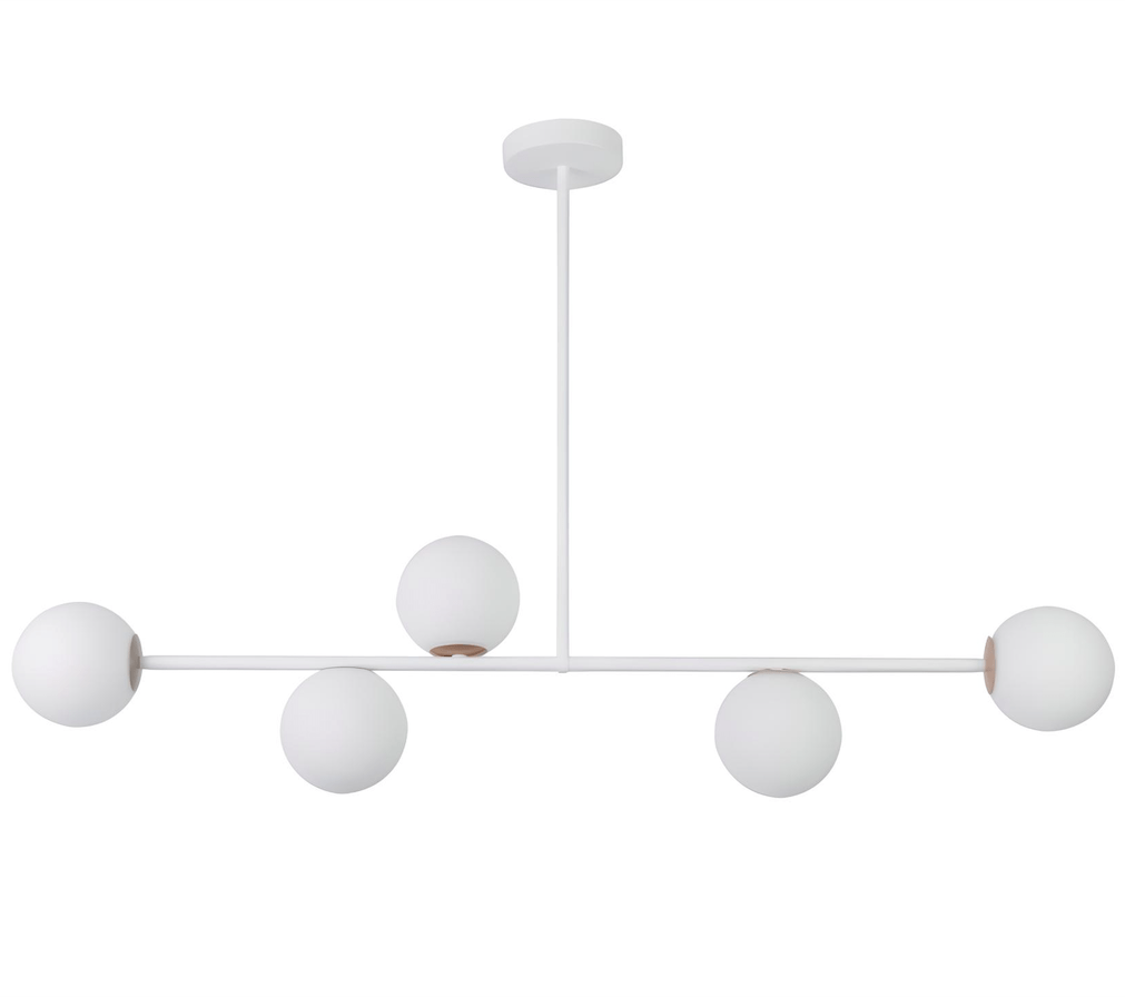Nowoczesny biały żyrandol sufitowy Glowspire 5 z szklanymi kulami