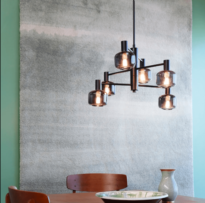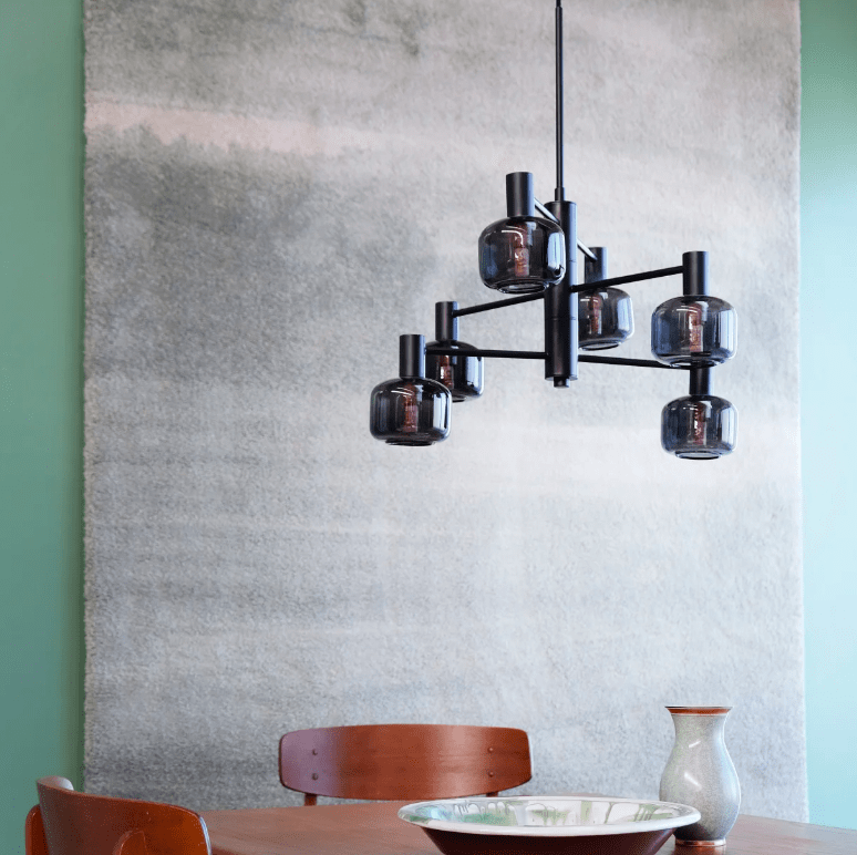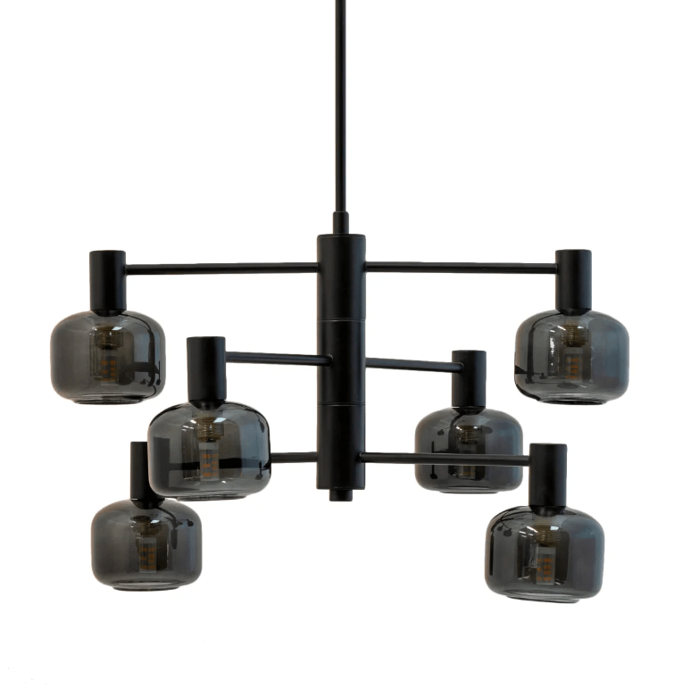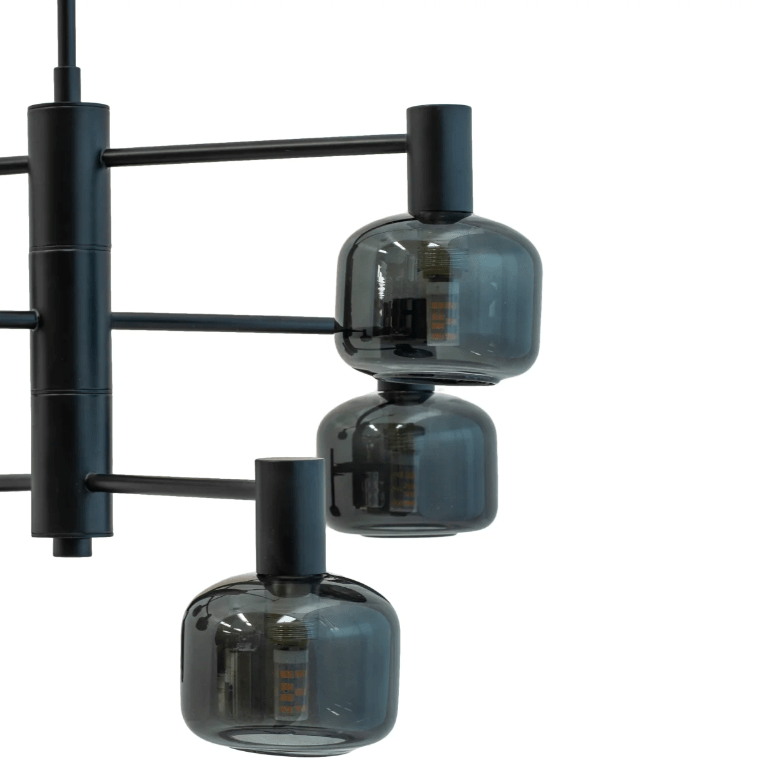 Nowoczesny czarny żyrandol Arp z dekoracyjnymi dymionymi kloszami