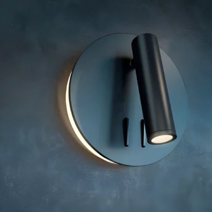Mały niewielki reflektorek do sypialni obok łóżka. Kinkiet ścienny, który pozwoli czytać książki w łóżku. Czarny z metalu w nowoczesnym stylu z technologią LED. 2 wyłączniki do światła nocnego i reflektorka.