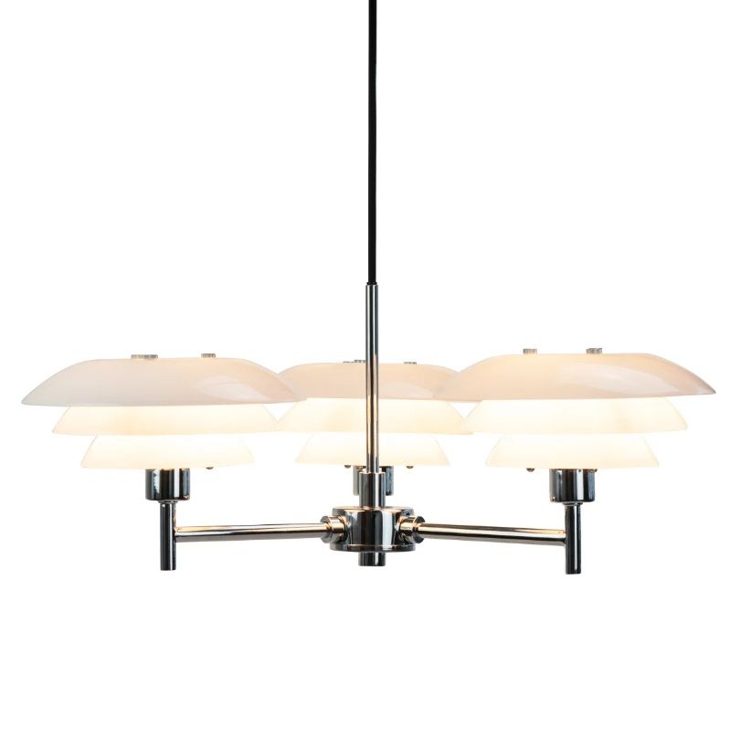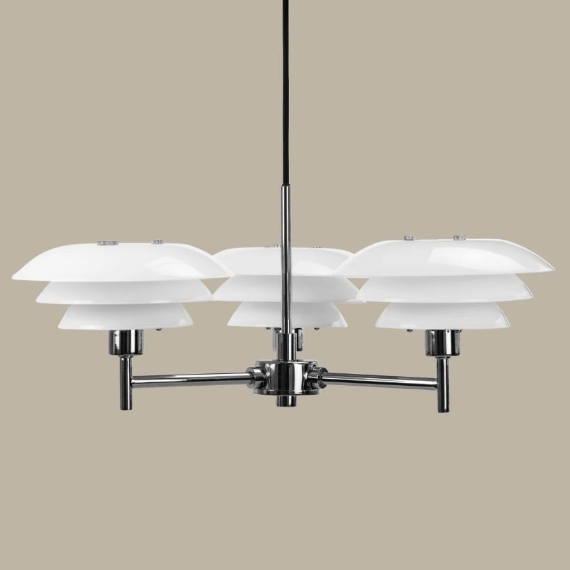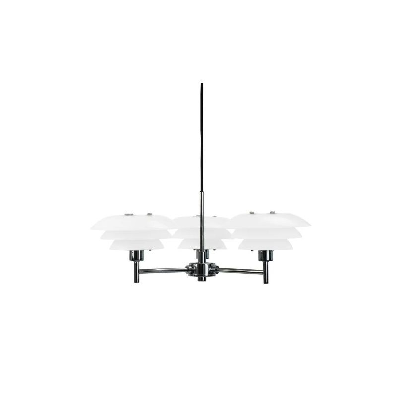Nowoczesny srebrny żyrandol DL20 z opalowymi szklanymi kloszami
