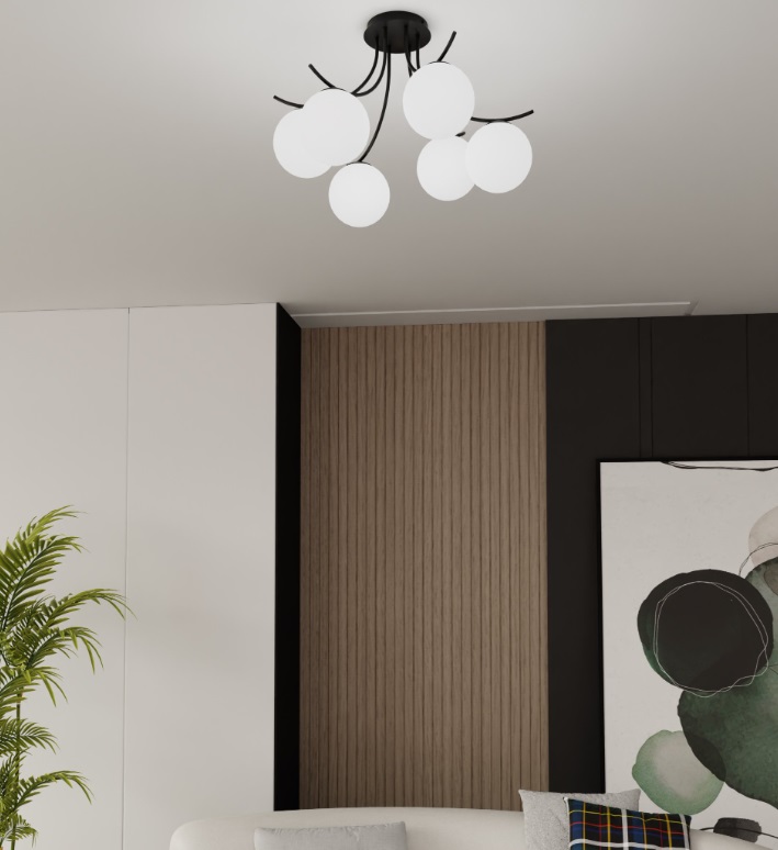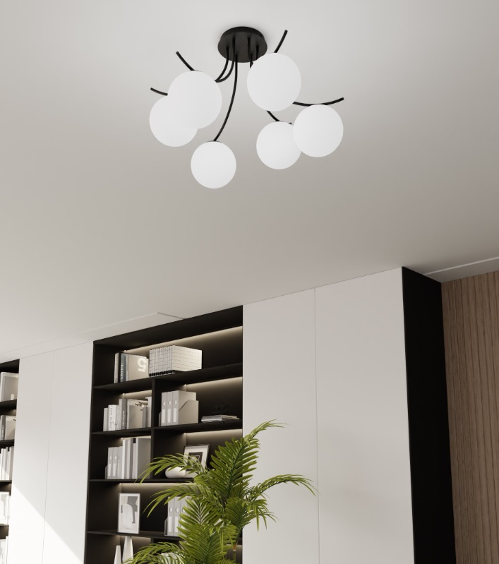 Potrzebujesz oświetlenia, które stanie się wizualnym sercem Twojego salonu? Żyrandol Boston 6 to mistrzowskie połączenie minimalistycznej formy z funkcjonalnością, które zachwyci każdego miłośnika nowoczesnego designu. Sześć mlecznobiałych, szklanych kul zawieszonych na organicznie wygiętych ramionach tworzy kompozycję przypominającą gałęzie z owocami światła.