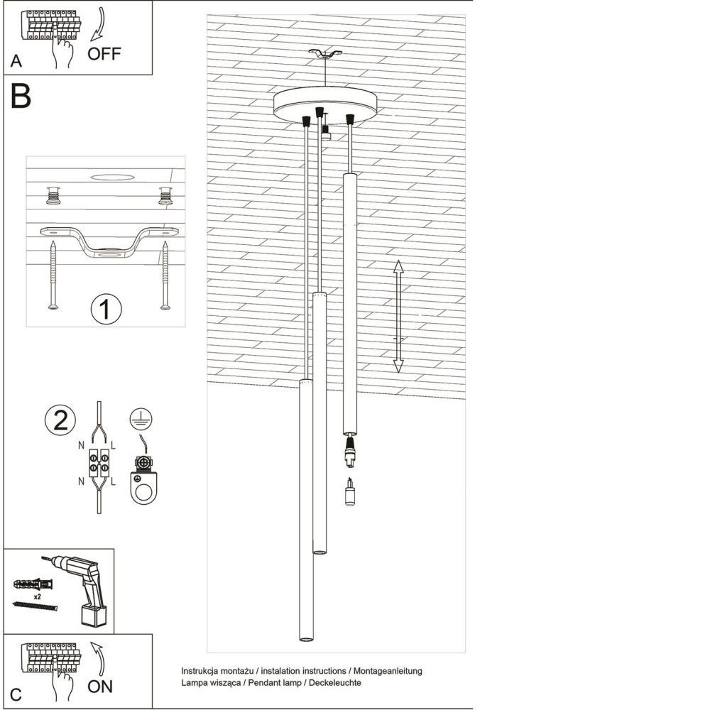 Nowoczesny żyrandol Pastelo 3P z czarnymi tubami