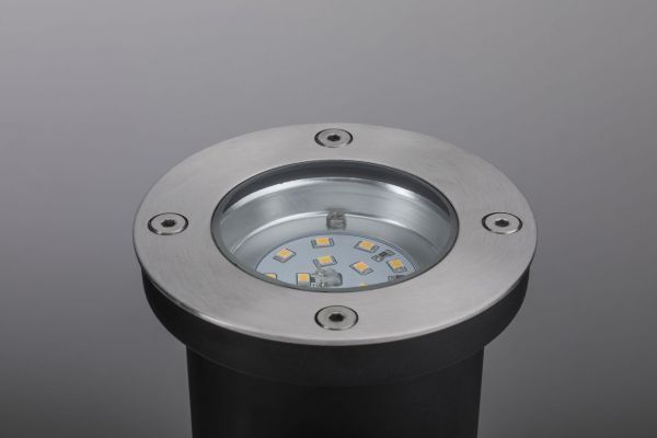 Srebrne oczko wpuszczane w podłoże. Doskonałe do oświetlenia chodnika lub pięknego trawnika. Oczko jest częścią systemu oświetlenia ogrodowego Plug&Shine, należy dokupić do niego odpowiednie akcesoria.