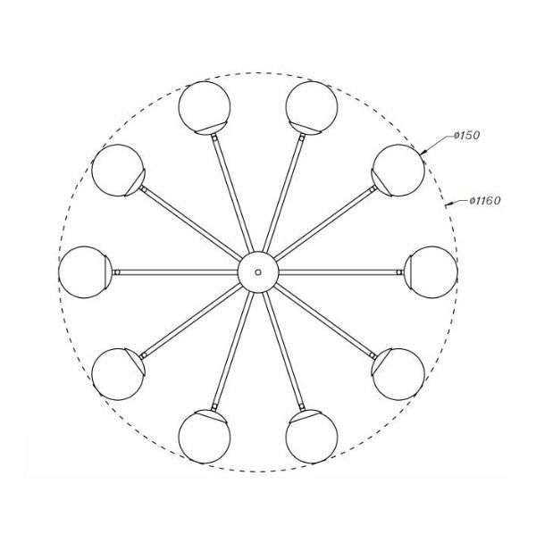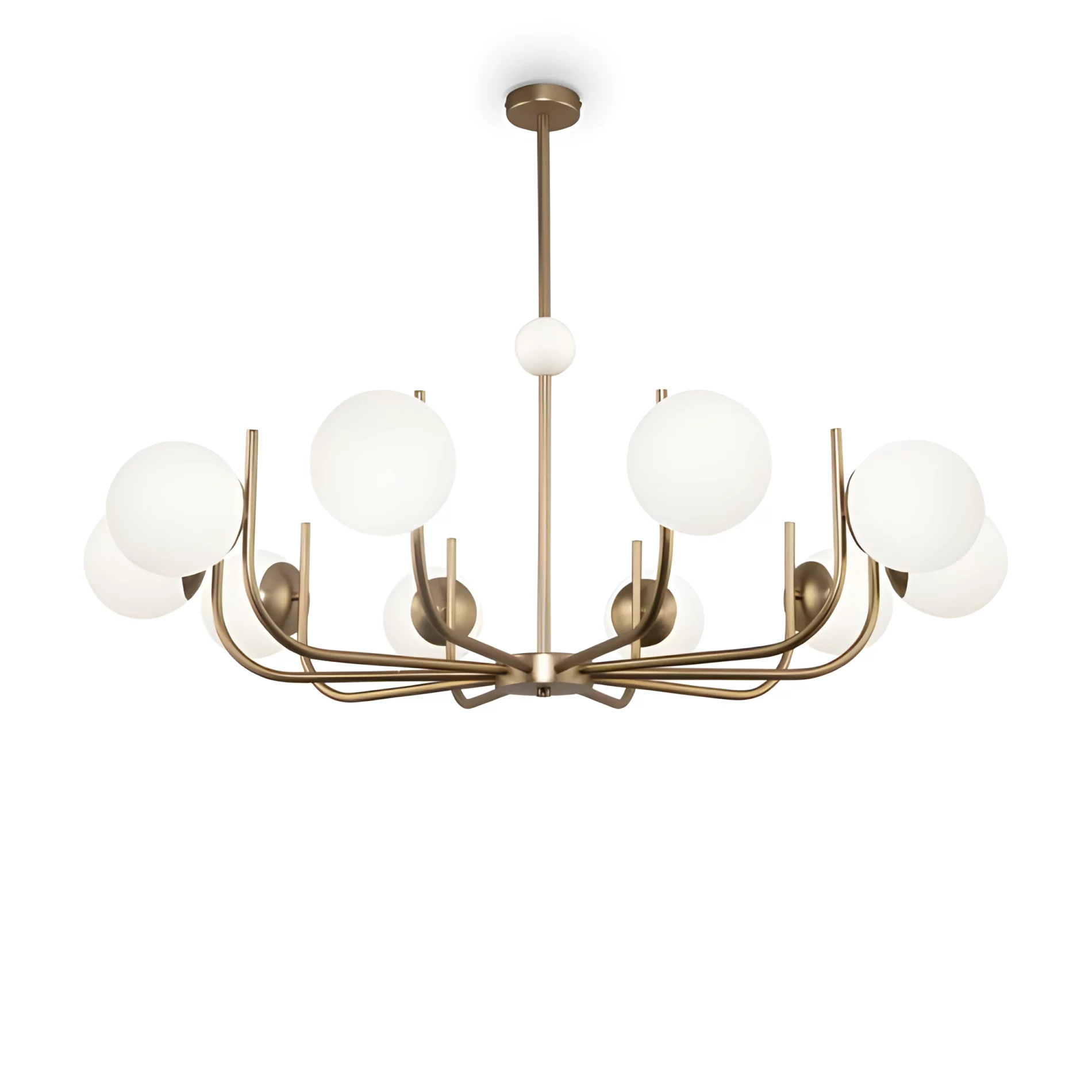Okazały złoty żyrandol Rendez-vous 10 ze szklanymi kloszami