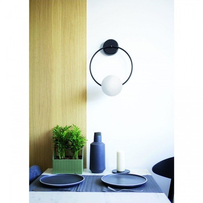 Okrągły kinkiet Fuppu B w czarnym kolorze z szklanym kloszem
