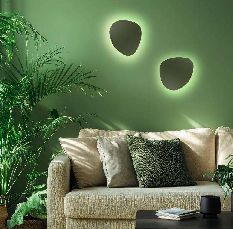 Ozdobny kinkiet Stone w zielonym kolorze do salonu z odbitym światłem