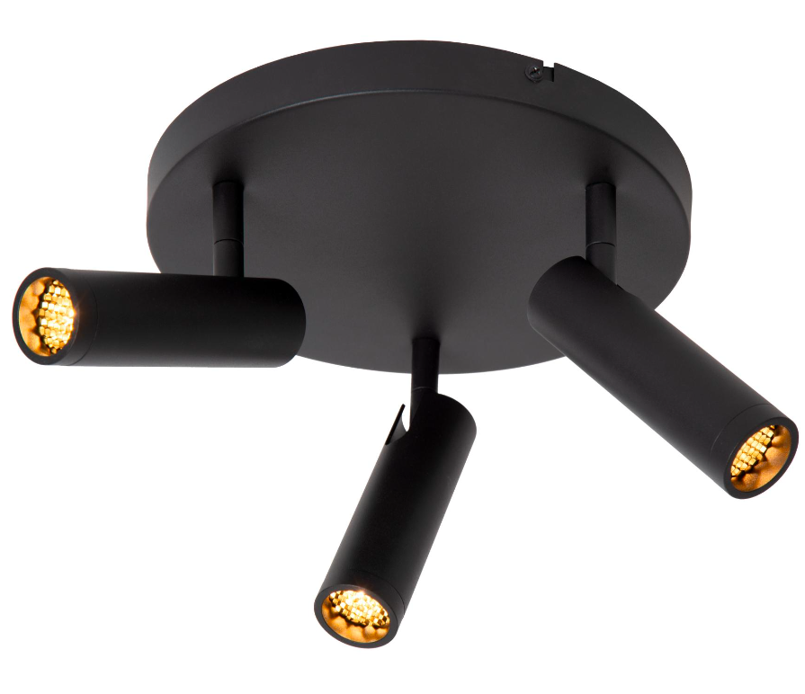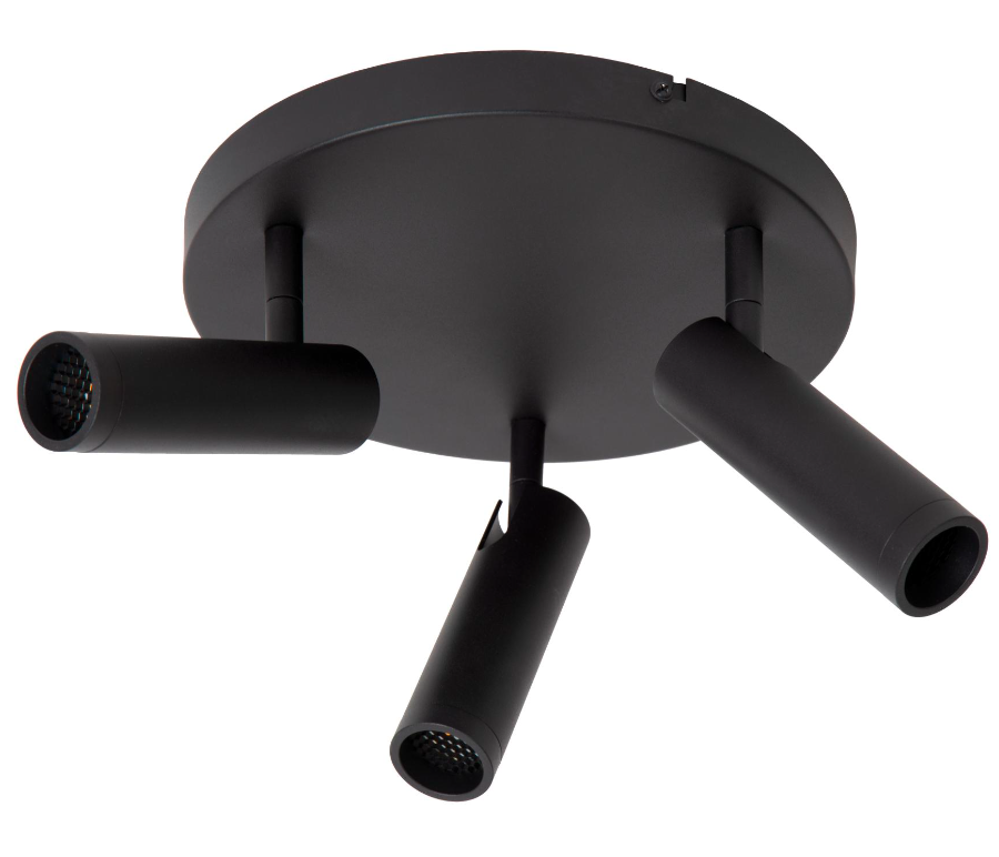 Plafon Grado 3 w czarnym kolorze z reflektorami tubowymi i efektem plastra miodu