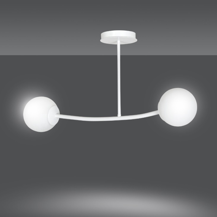 Halldor 2 to prawdziwa perełka wśród nowoczesnych plafonów sufitowych. Jego charakterystyczna, delikatnie wygięta konstrukcja z dwoma szklanymi kulami wprowadza do wnętrza świeżość i dynamikę, jednocześnie zachowując subtelną elegancję. Białe, mleczne klosze o średnicy 15 cm zapewniają idealne rozproszenie światła, tworząc przyjemną, nieoślepiającą poświatę w całym pomieszczeniu.