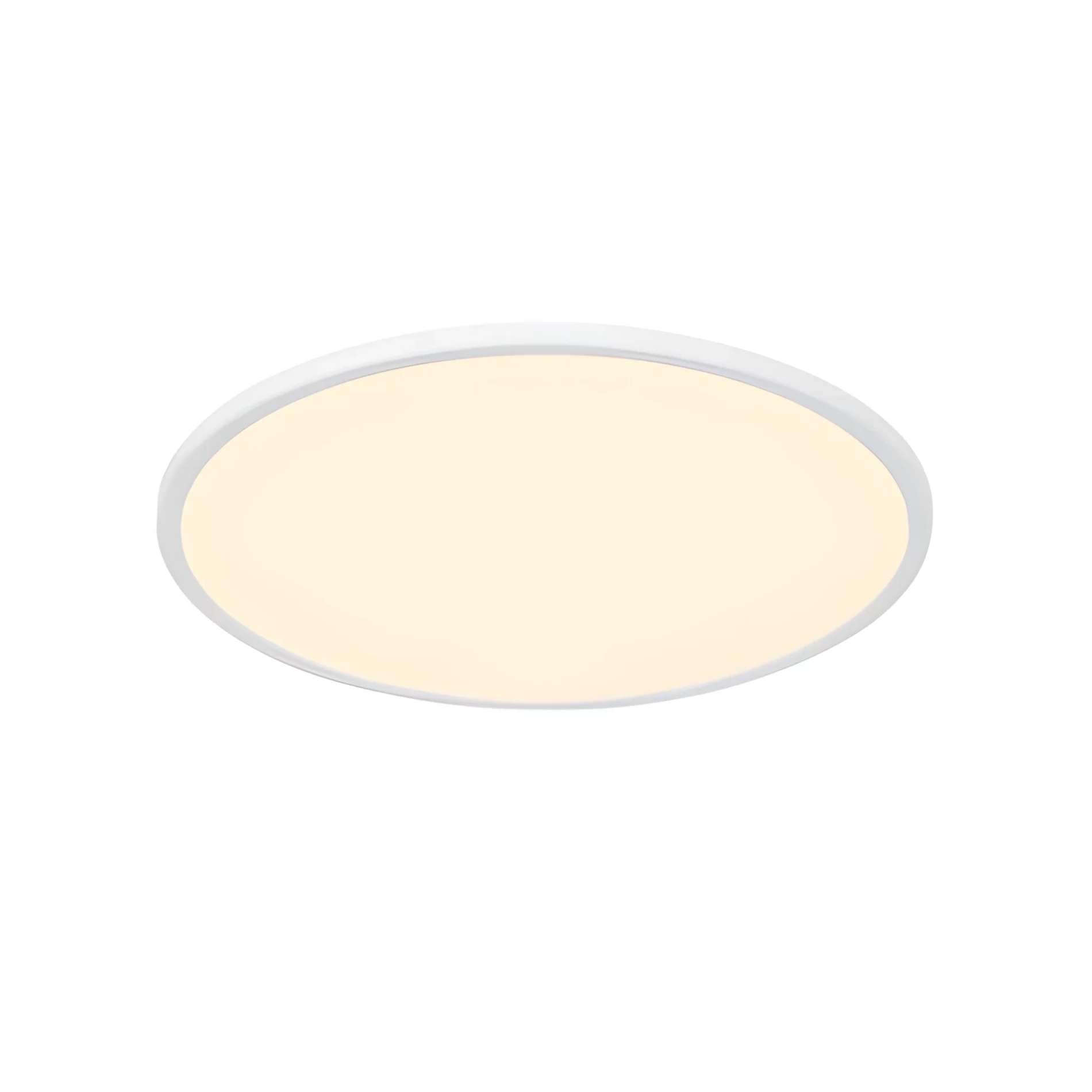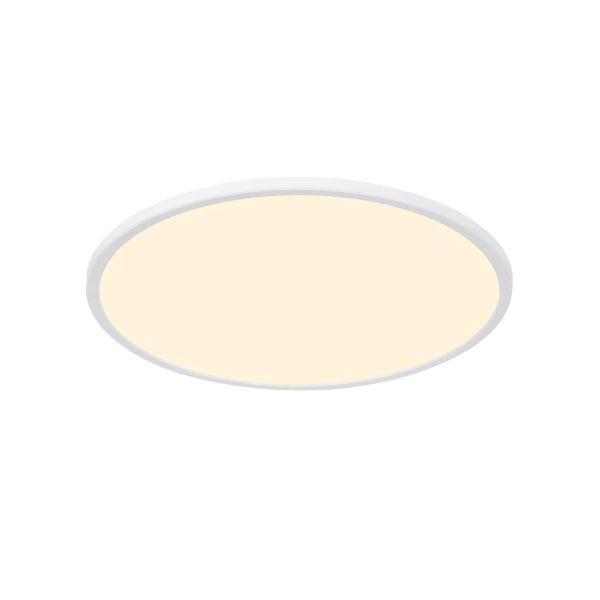 Ledowa lampa sufitowa o średnicy 42 cm, cienka, biała obudowa.