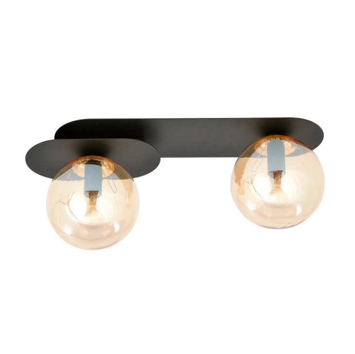 Plafon sufitowy Plaza 2 z bursztynowymi kloszami – elegancka lampa z czarną matową podstawą