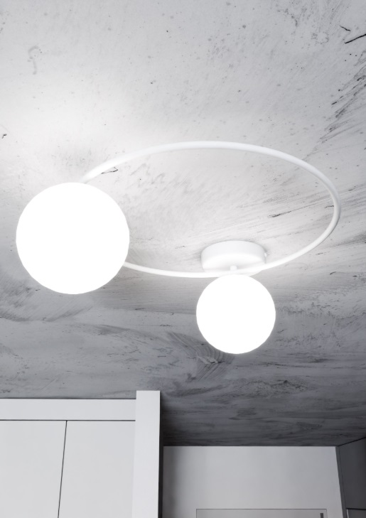 - ✓ Elegancka biała obręcz z dwoma opalowymi kloszami o średnicy 15 cm każdy