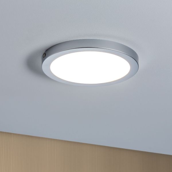 Płaski plafon Atria - srebrny plafon łazienkowy LED