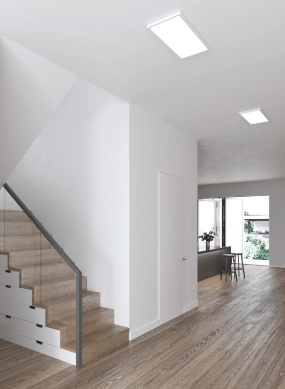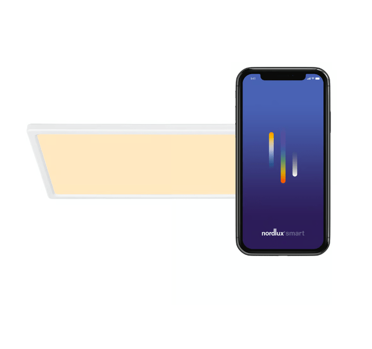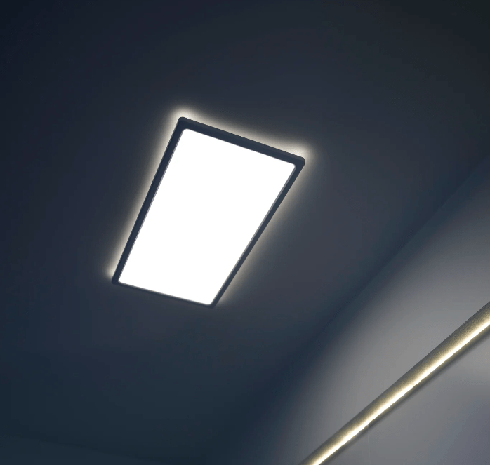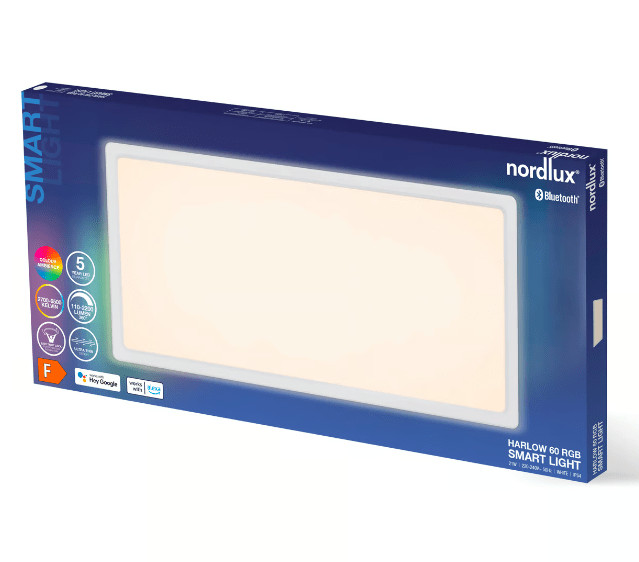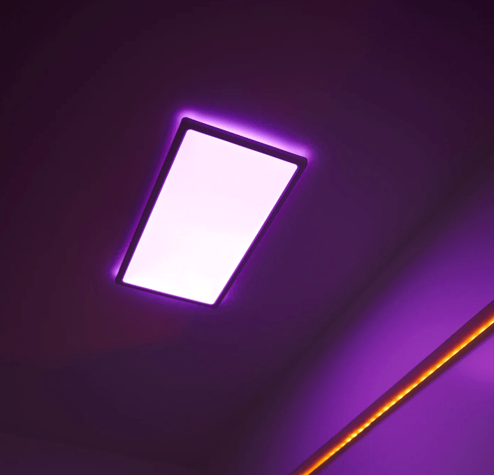 Płaski, prostokątny plafon LED Harlow SMART z możliwością zmiany barw i klasą szczelności IP54