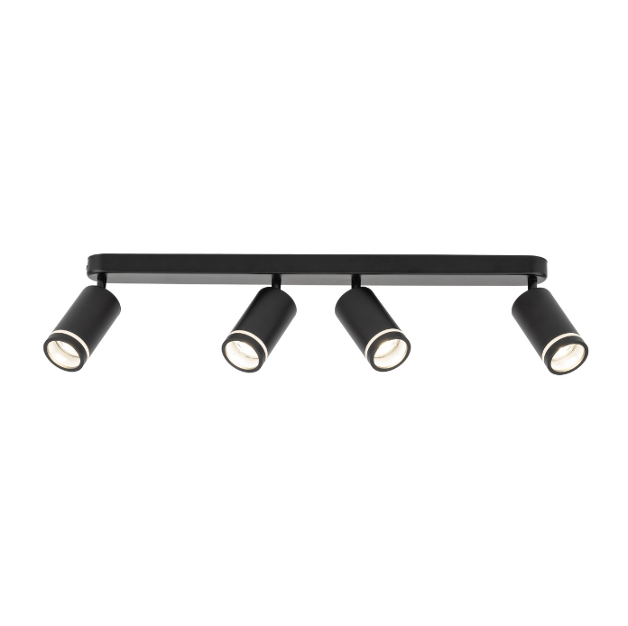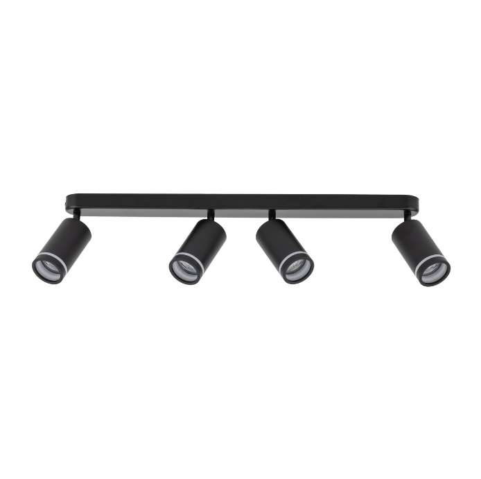 Podłużna czarna lampa sufitowa Jet z czterema tubowymi reflektorami