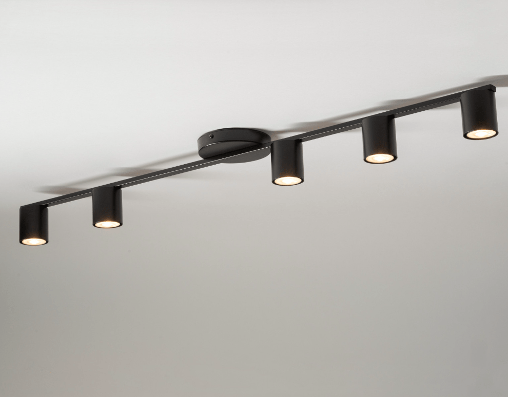 Podłużna lampa sufitowa z tubami na listwie Zyon 5 - czarna
