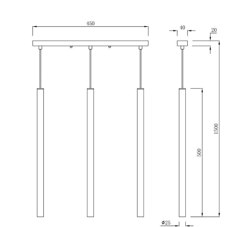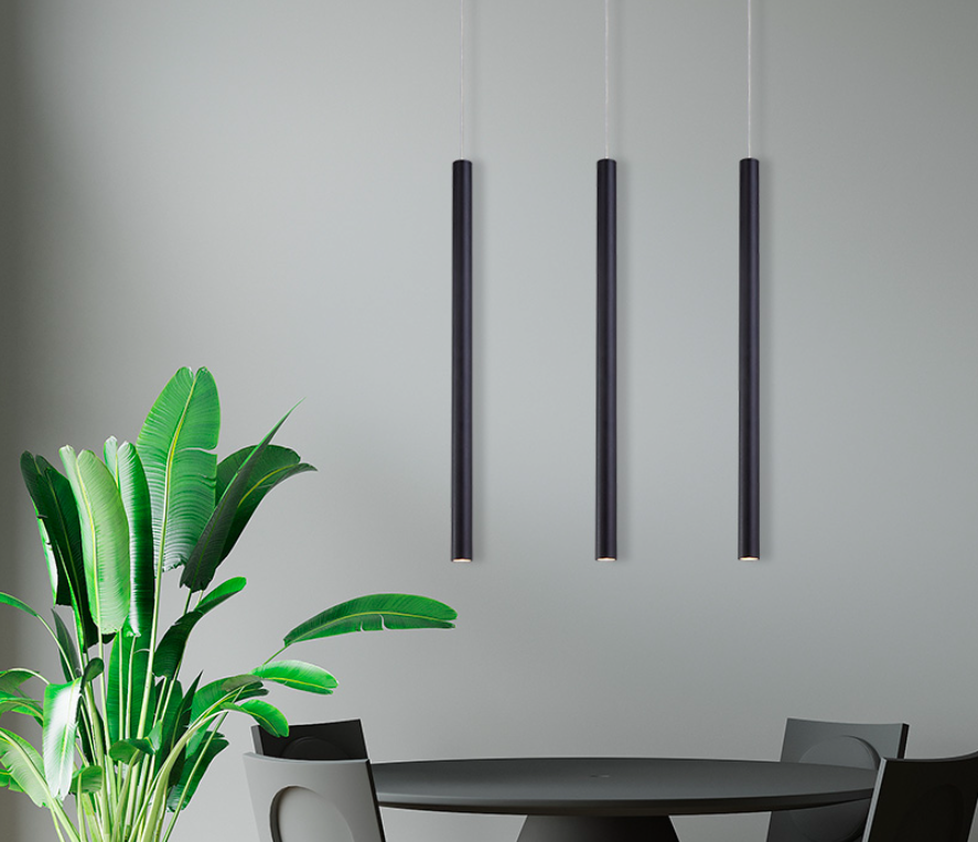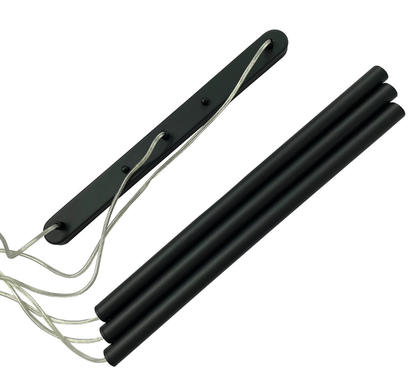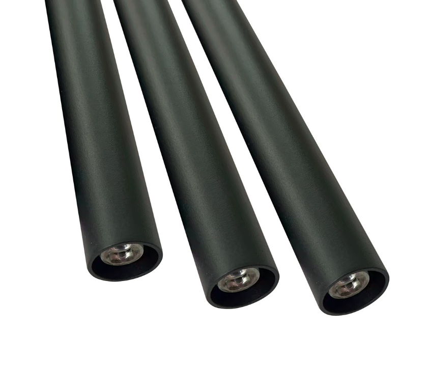 Podłużna wisząca lampa Lungo z trzema smukłymi czarnymi tubami