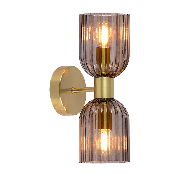 Przejdź do sklepuPodwójna lampa ścienna Piega 2 z grafitowoszarym szkłem do sypialni