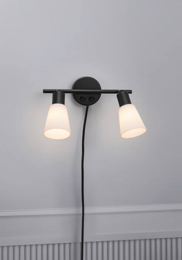 Napisz pierwszą opinię o „Elegancki kinkiet Cole z czarną podstawą – 2 włączniki, szklane klosze, do sypialni”