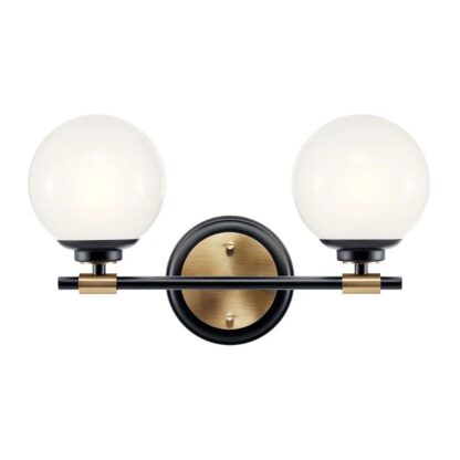 Przejdź do sklepuPodwójny kinkiet łazienkowy Benno czarno‑złoty z mlecznymi kulami IP44