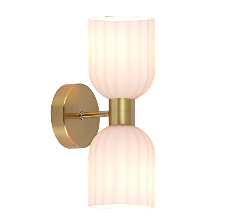 Przejdź do sklepuPodwójny kinkiet Piega 2 z białymi, ryflowanymi kloszami