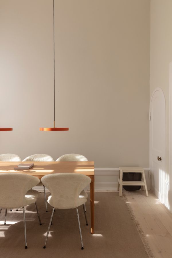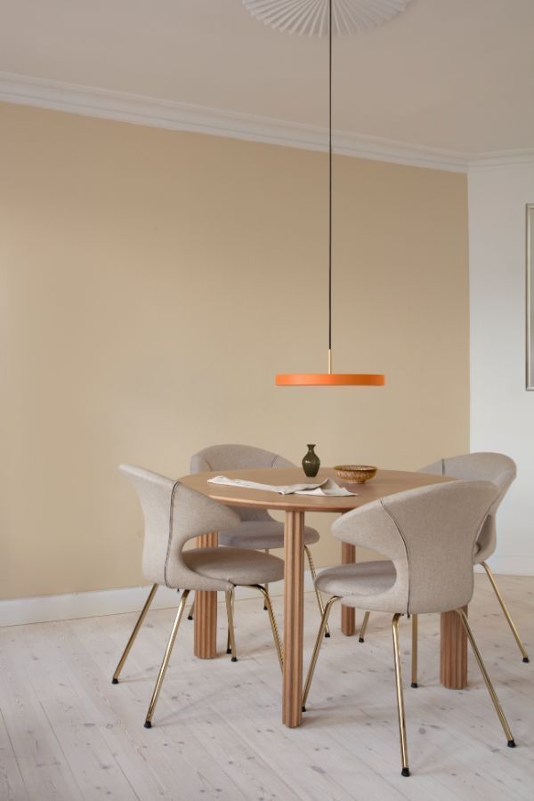 Pomarańczowa lampa wisząca Asteria Mini z płaskim kloszem i wbudowanym oświetleniem LED