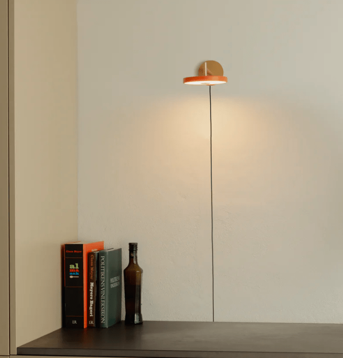 Pomarańczowy kinkiet Asteria Wall z wtyczką i ruchomym kloszem LED