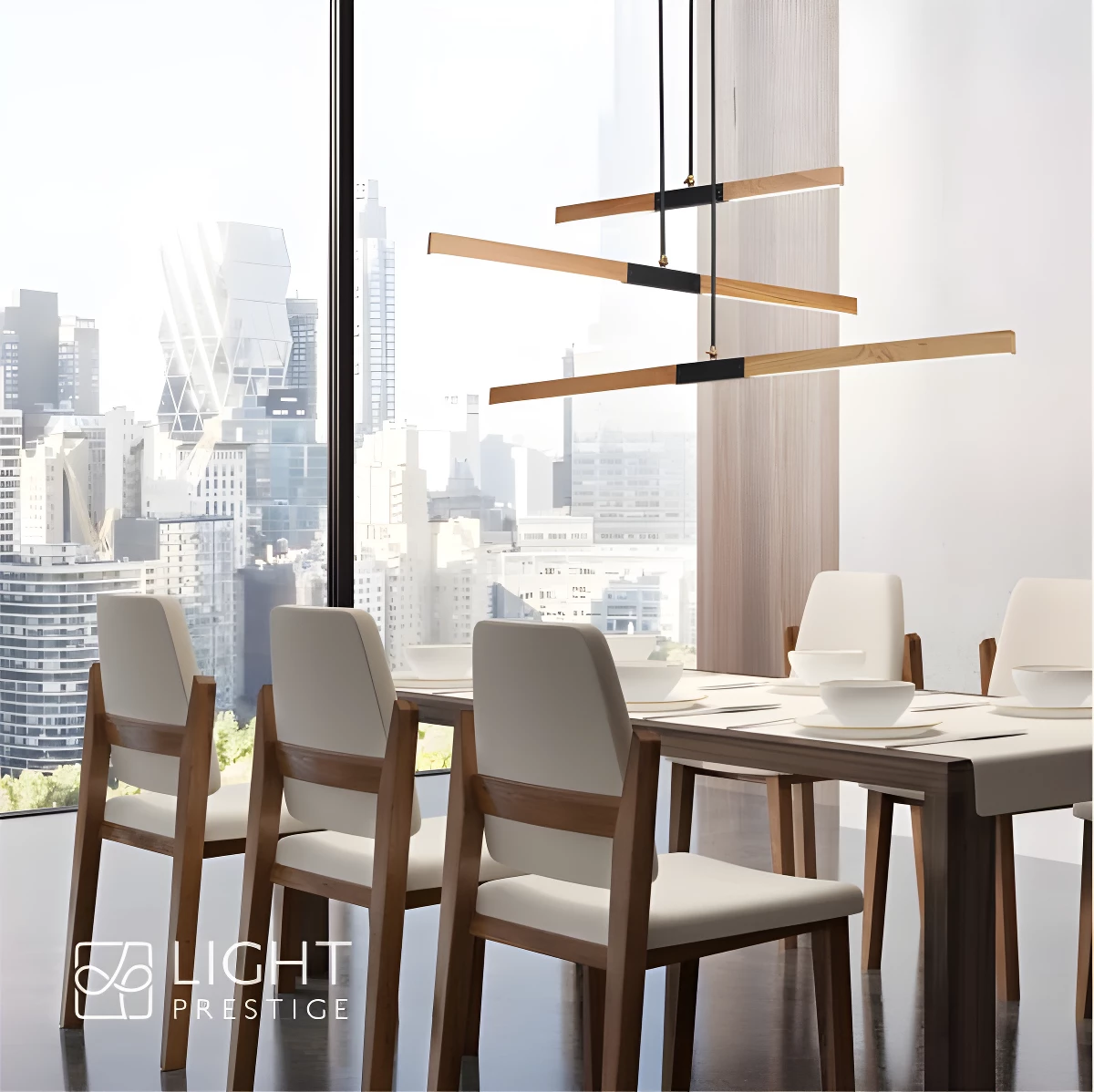 Ciekawa propozycja lampy wiszącej nad stół. Bambusowe listwy z zawieszone poziomo będą zdobić salony i jadalnie w stylu nowoczesnym.