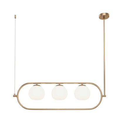 Podłużna srebrna lampa wisząca Erich z trzema kulistymi kloszami, idealna nad wyspę kuchenną