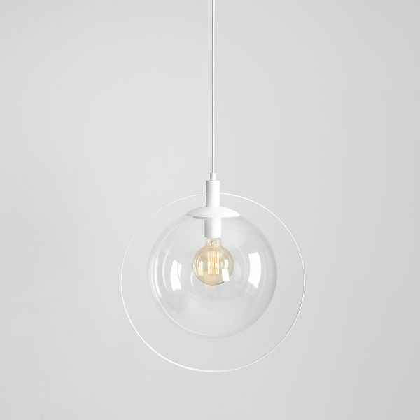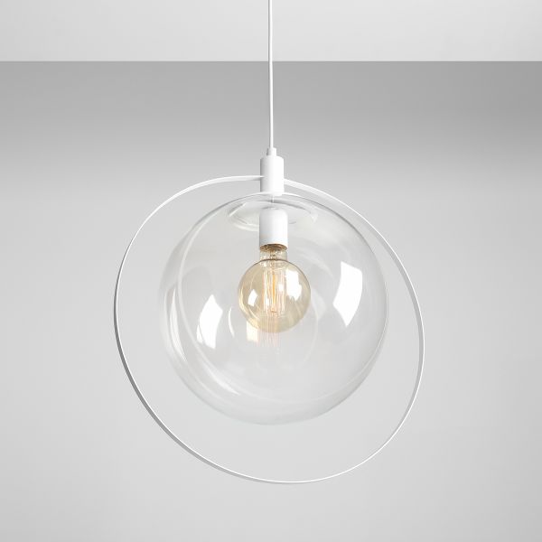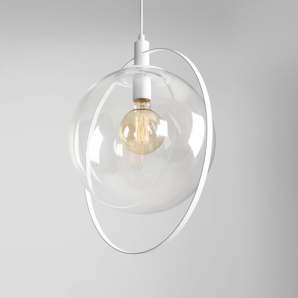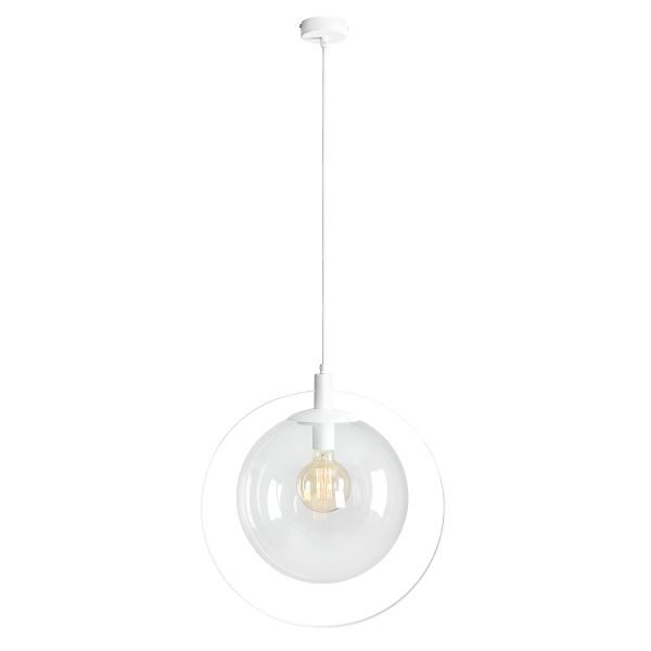 Promocja – wisząca lampa Aura z przezroczystym kloszem i białą oprawą