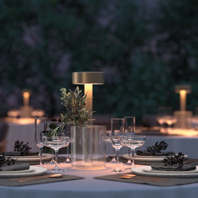 Przenośna złota lampka stołowa z kwietnikiem AI Collaboration, ładowana przez USB