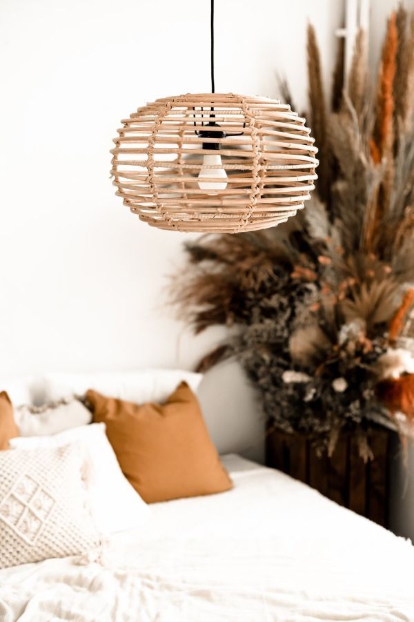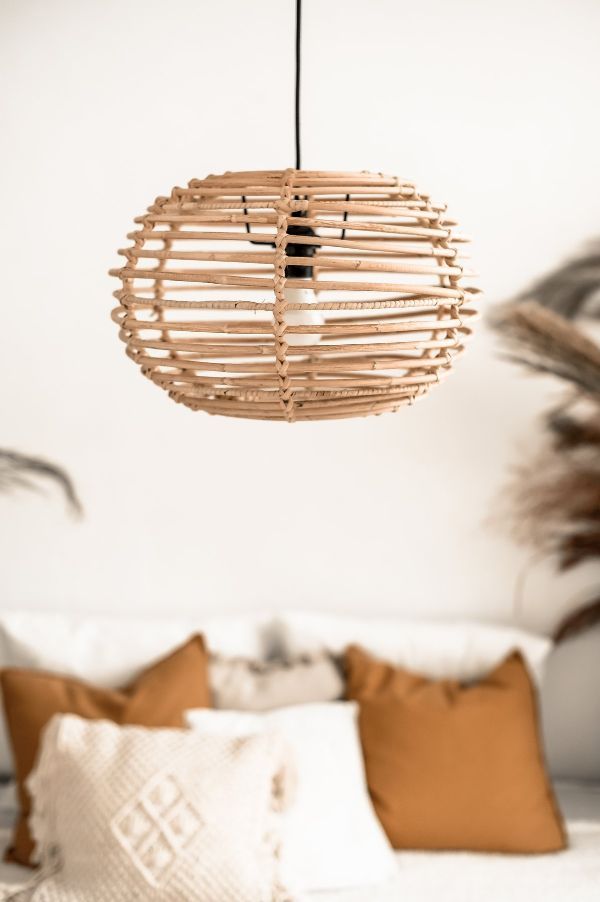 Napisz pierwszą opinię o „Rattanowa, wisząca lampa Moon z delikatnym ażurowym kloszem”