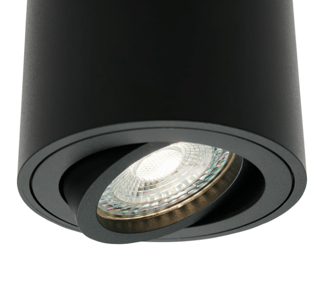 Regulowany sufitowy spot Sabonis w czarnym kolorze, wykonany z aluminium