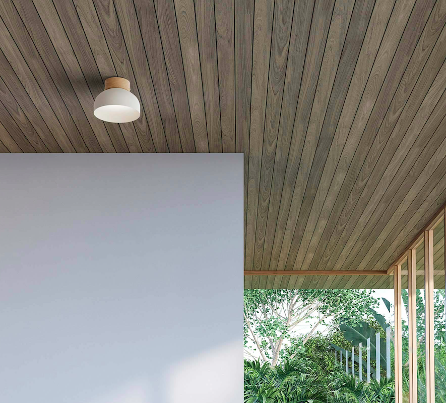 Skandynawski czarny plafon Reiko wykonany z naturalnego drewna jesionowego