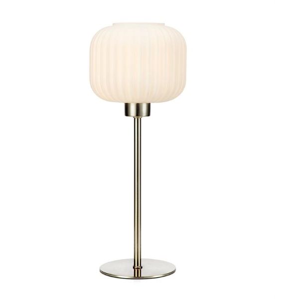 Srebrna lampa stołowa Sober S z mlecznym kloszem
