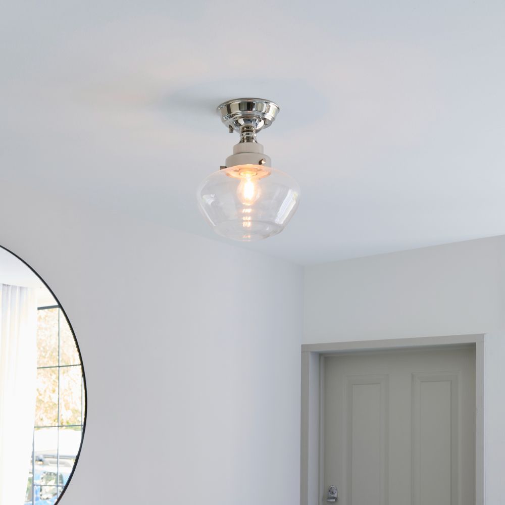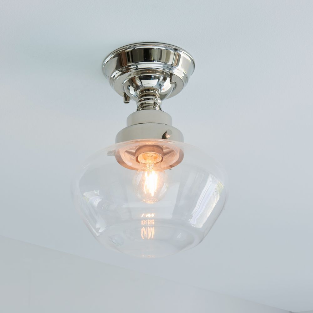 Srebrna lampa sufitowa Glint z przezroczystym kloszem