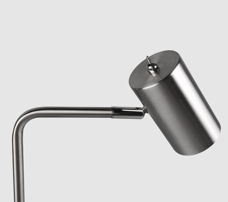 Srebrna, regulowana lampka nocna Marley do sypialni