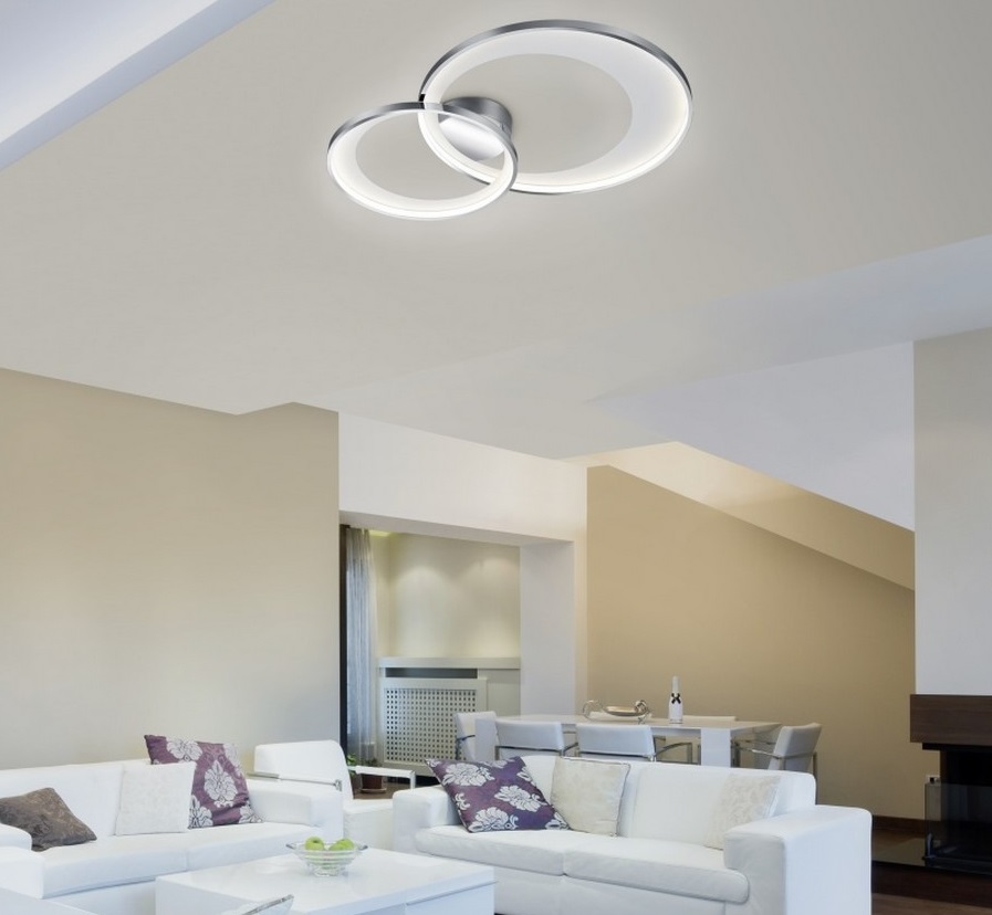 Srebrna, ściemnialna lampa sufitowa LED Granada o mocy 29W