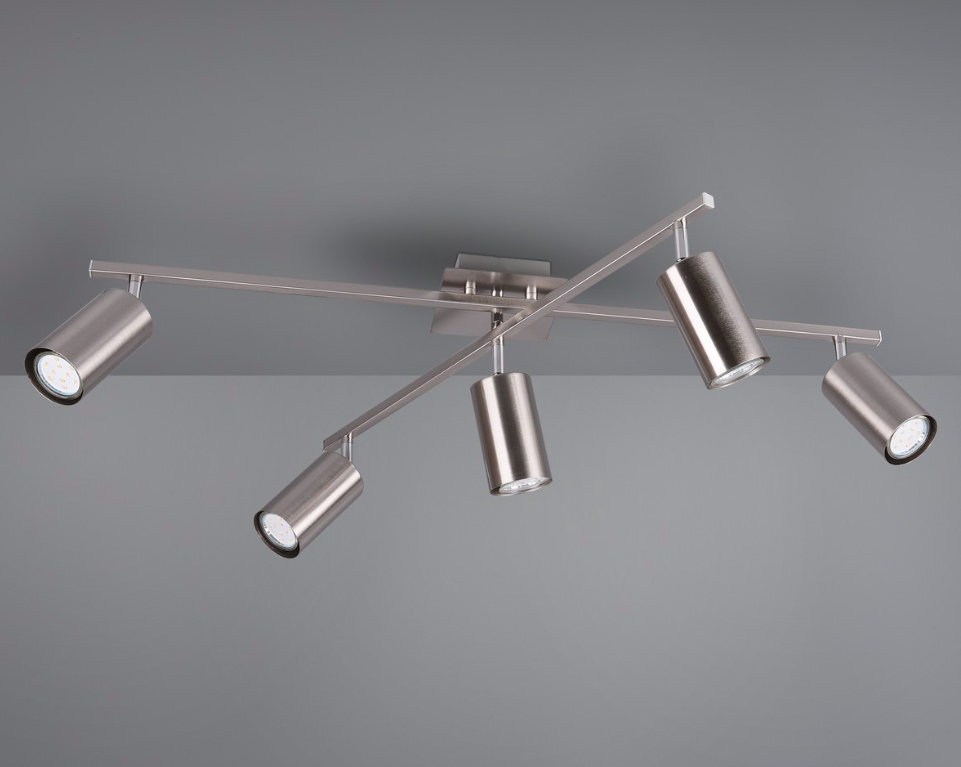Srebrna sufitowa lampa Marley 5 z kloszami w formie tub