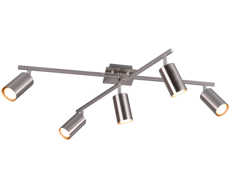 Srebrna sufitowa lampa Marley 5 z kloszami w kształcie tub