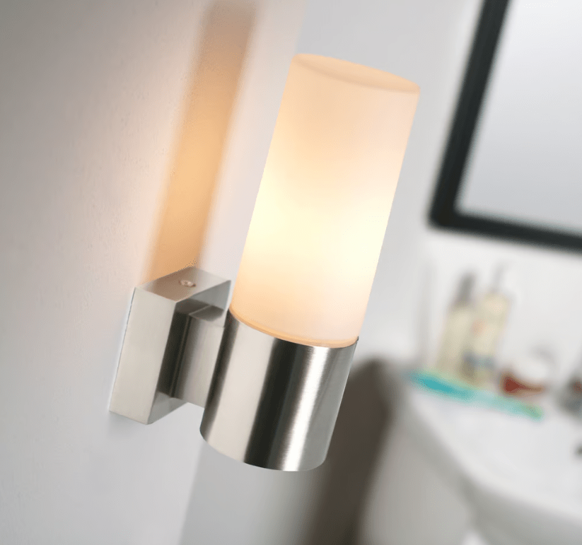 Srebrna tuba kinkietu łazienkowego Tangens Single o klasie szczelności IP44
