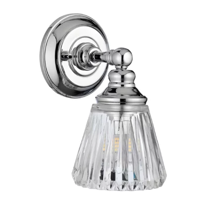 Srebrny kinkiet łazienkowy Keynes z szklanym kloszem